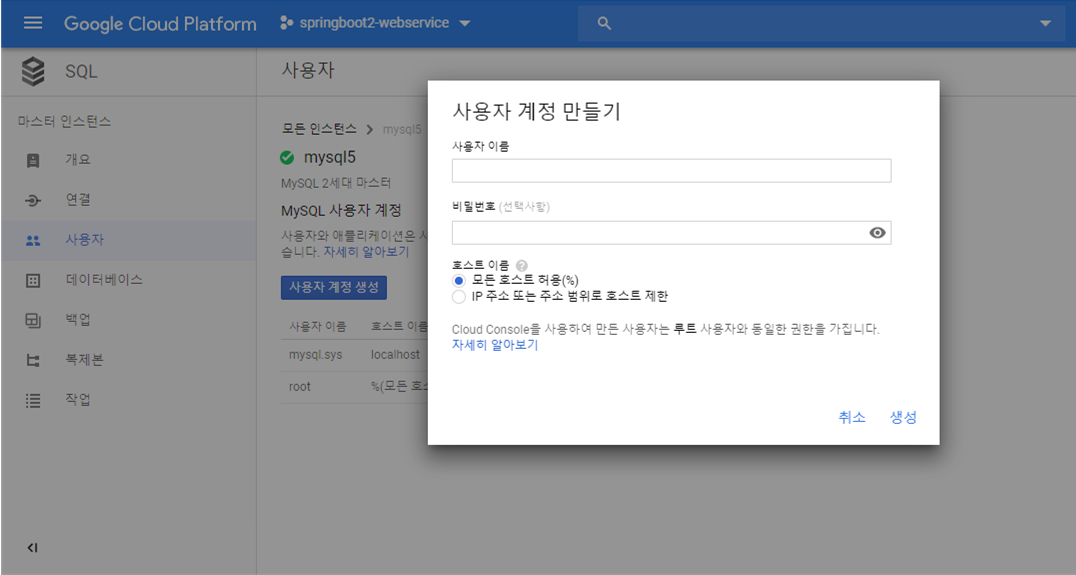 여기까지 GCP MySQL 설정 과정이 마무리 되었고,